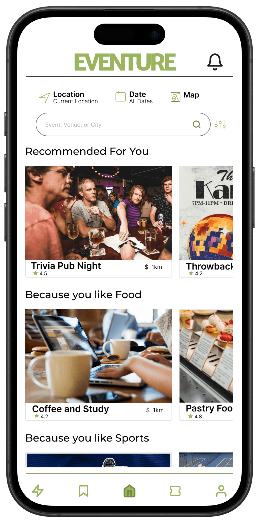 A user-focused experience that extends event discovery beyond attendance to community. Through curated event recommendations and opportunities for users to connect before and after events, Eventure is designed to reduce barriers associated with social participation and create more engaging and meaningful social experiences