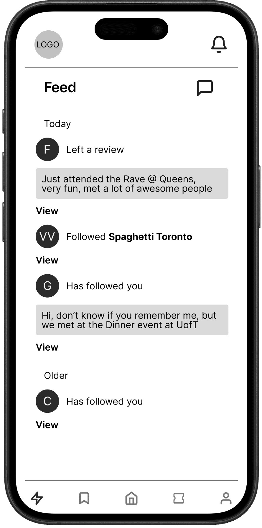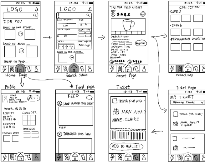 Based on the golden user path, the design focus shifted towards curated event discovery and less on social interactivity. Home, Search, Event, and Ticket pages were the most foundational for the UI