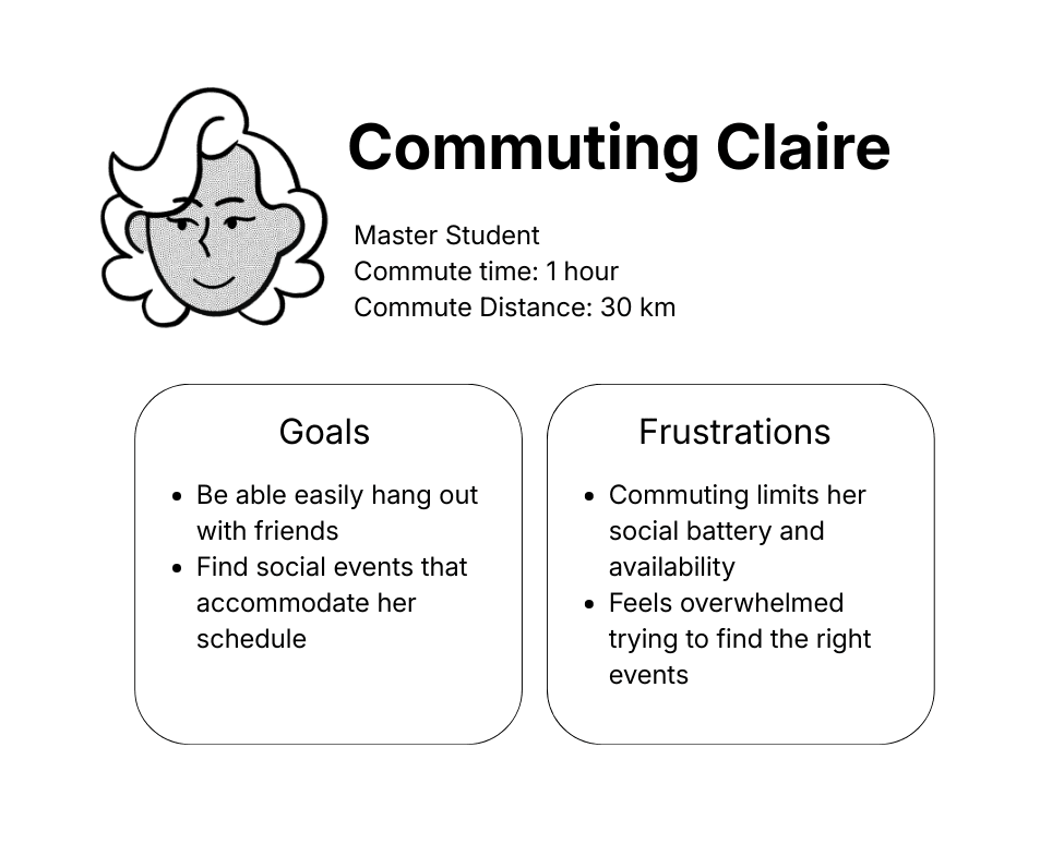 Commuter students lack solutions that support both event discovery and relationship building, leaving them without accessible opportunities to socially participate