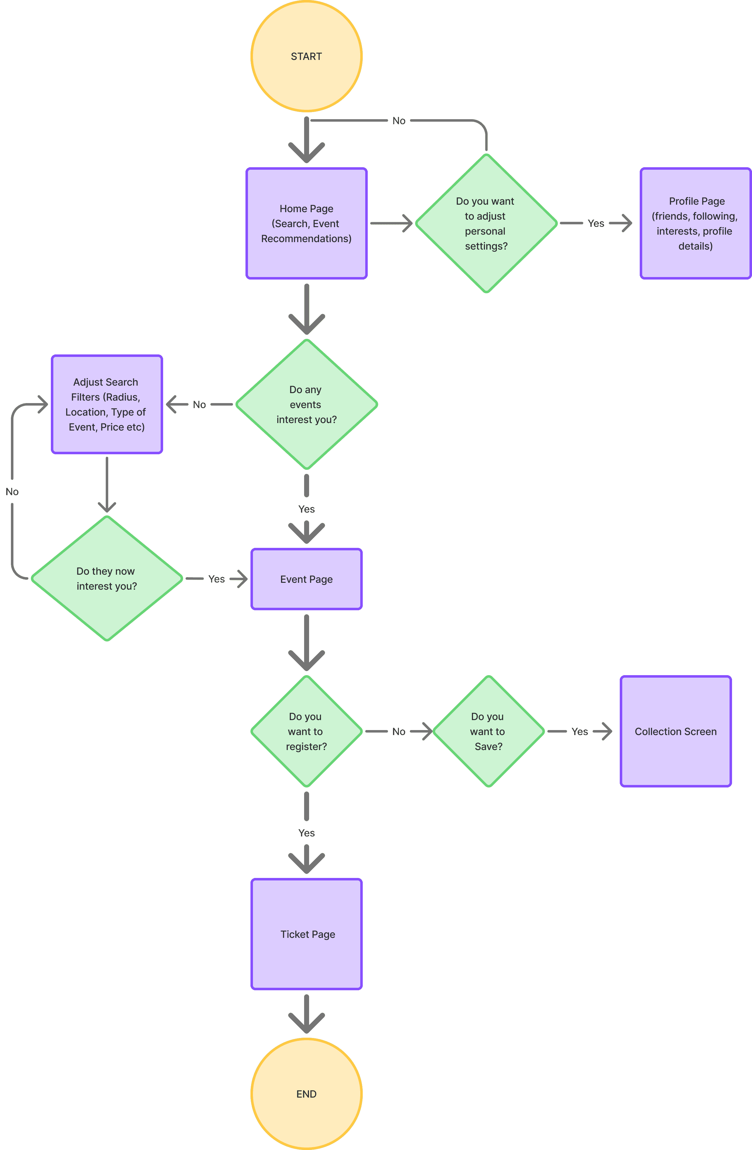 User task flow from event recommendation to registration was seen as most foundational